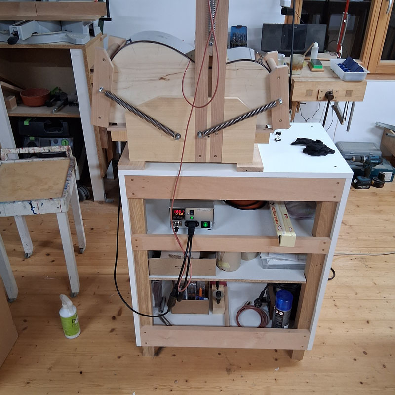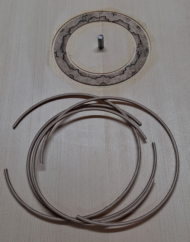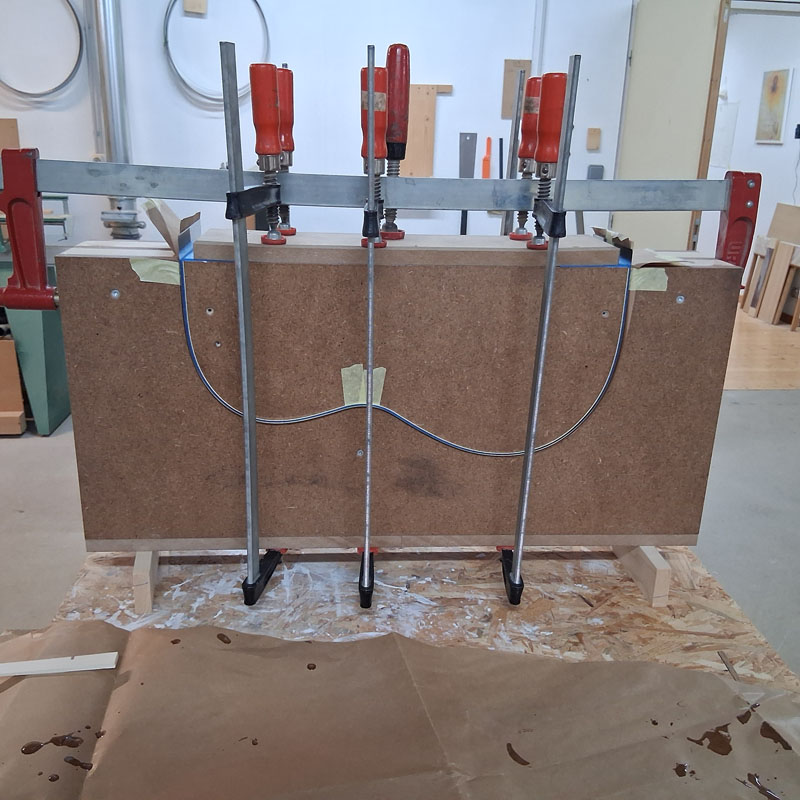Les éclisses doublées avec de l’épicéa sont pliées avant collage.