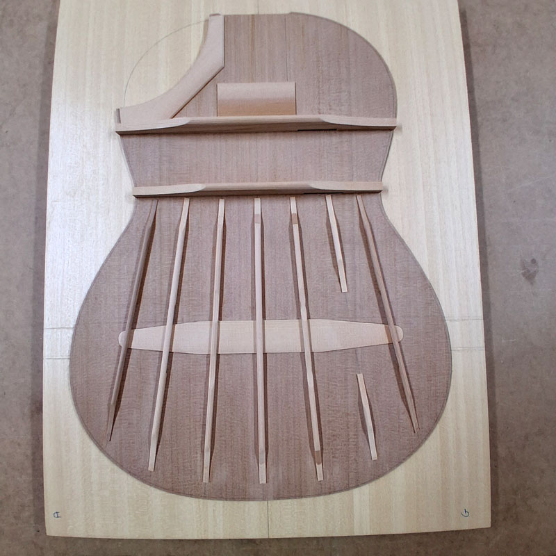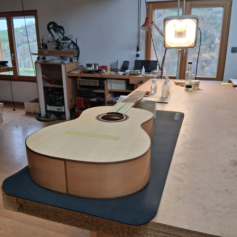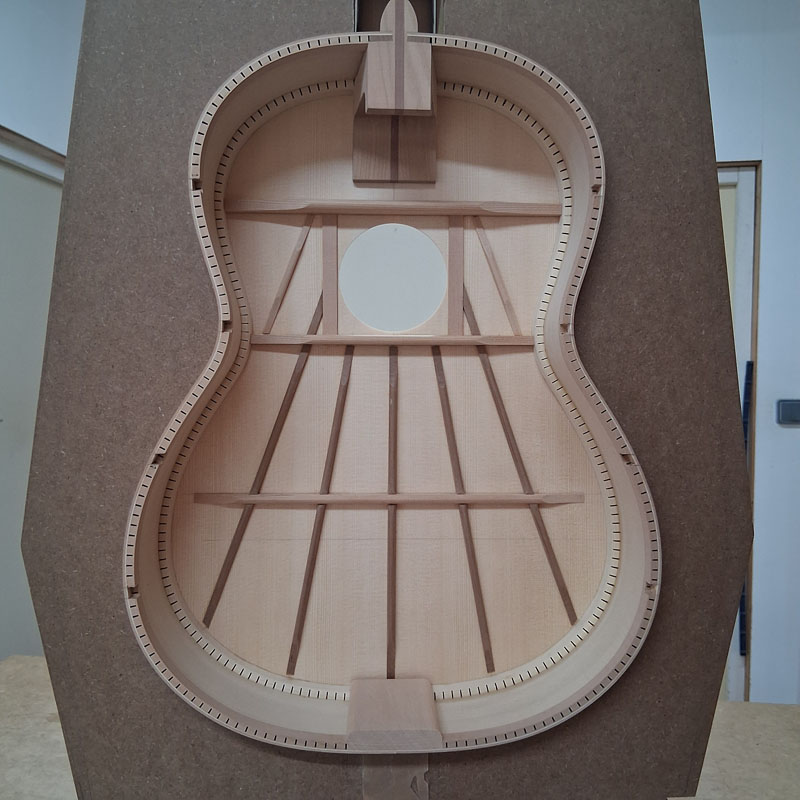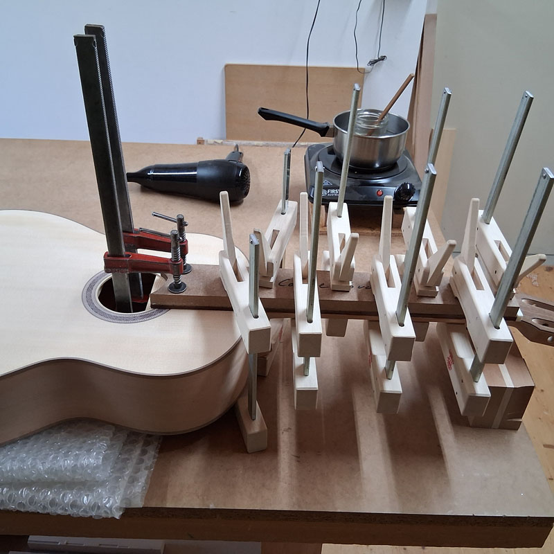 Pour les guitares avec évent, j’ai utilisé un barrage précontraint dans le style de Gérard Audirac.
